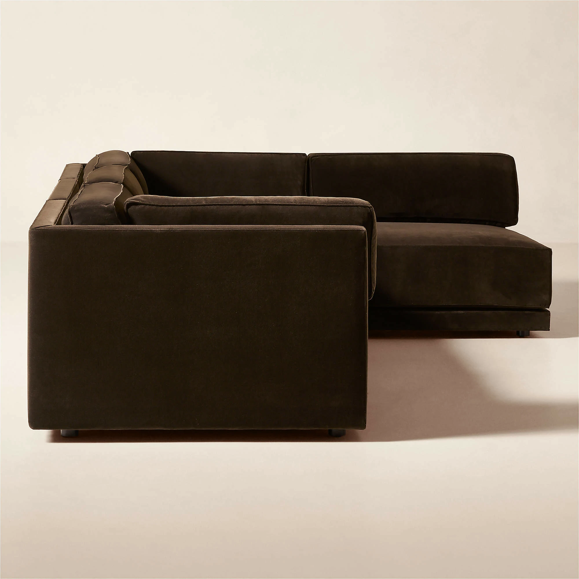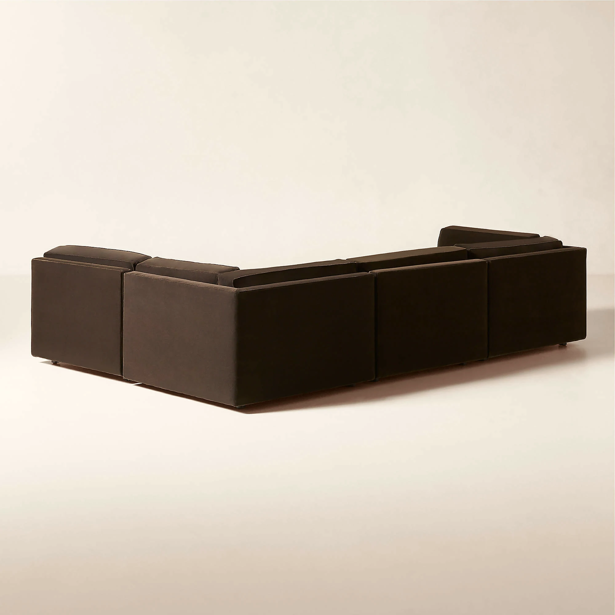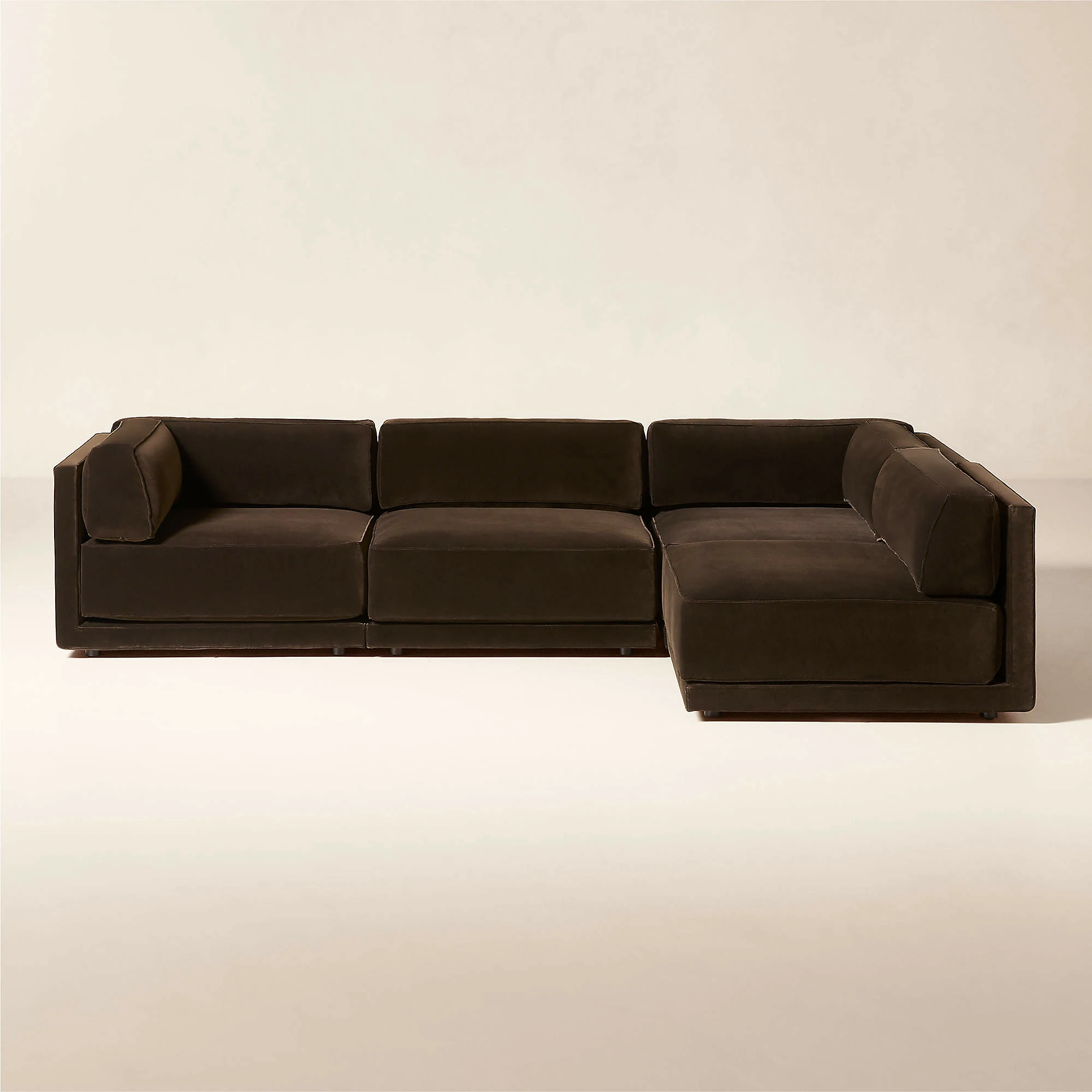 أريكة أوريول – 4 قطع حرف L من المخمل البني الداكن عالي الأداء | تصميم العائلة