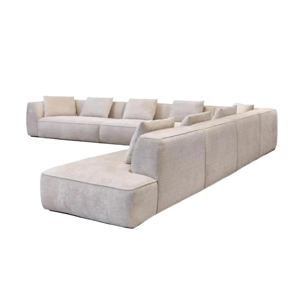 أريكة مونزا المعيارية بتصميم مودرن واسع ومريح، مثالية لغرف المعيشة الكبيرة والمساحات المفتوحة. تعتمد على نظام القطع المعيارية (Modular) الذي يوفّر مرونة عالية في الترتيب، مع جلسات عميقة تمنح راحة مثالية للاستخدام اليومي والتجمعات العائلية.