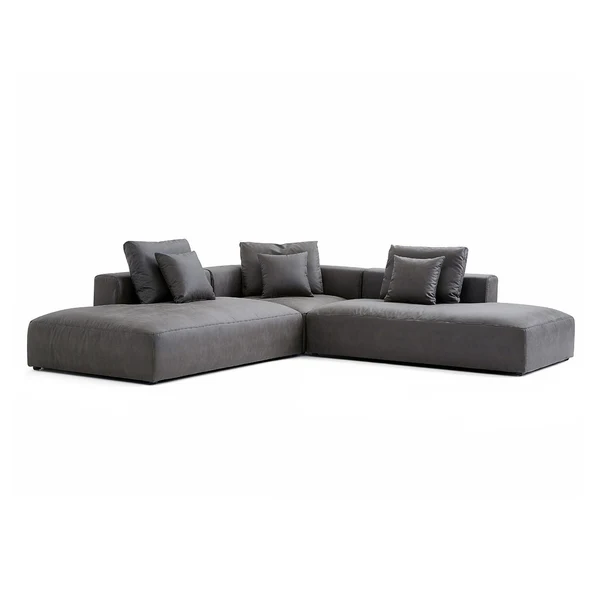 تأتي الركنة بتنجيد جلد عالي الأداء أو قماش رمادي وبني فاخر، لتكون مناسبة للاستخدام اليومي مع سهولة الصيانة والتنظيف. الأرجل المخفية تمنح الركنة مظهرًا متماسكًا وكأنها قطعة واحدة صلبة متناسقة مع الأرضية، بينما تضيف وسائد الظهر المنفصلة والمنفوخة إحساسًا بالراحة المطلقة.