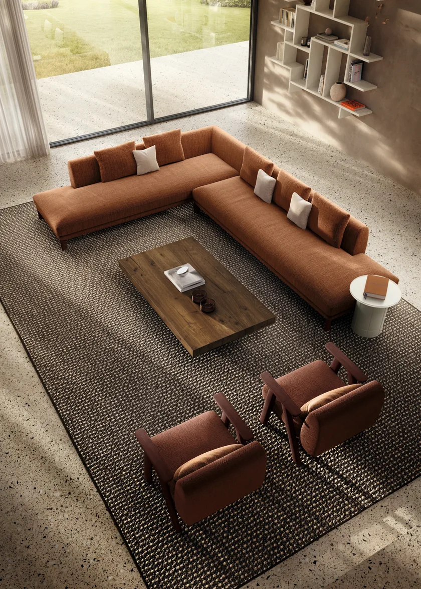 توفر الوسائد الناعمة أقصى درجات الراحة، بفضل جودة المواد المستخدمة، بينما تضيف الأرجل الخشبية البيضاوية بزاوية 45 درجة لمسة تصميم معمارية مميزة. بفضل النظام المعياري، يمكن ترتيب الأركان المعيارية بشكل مرن لتتناسب مع أي مساحة أو تصميم داخلي.