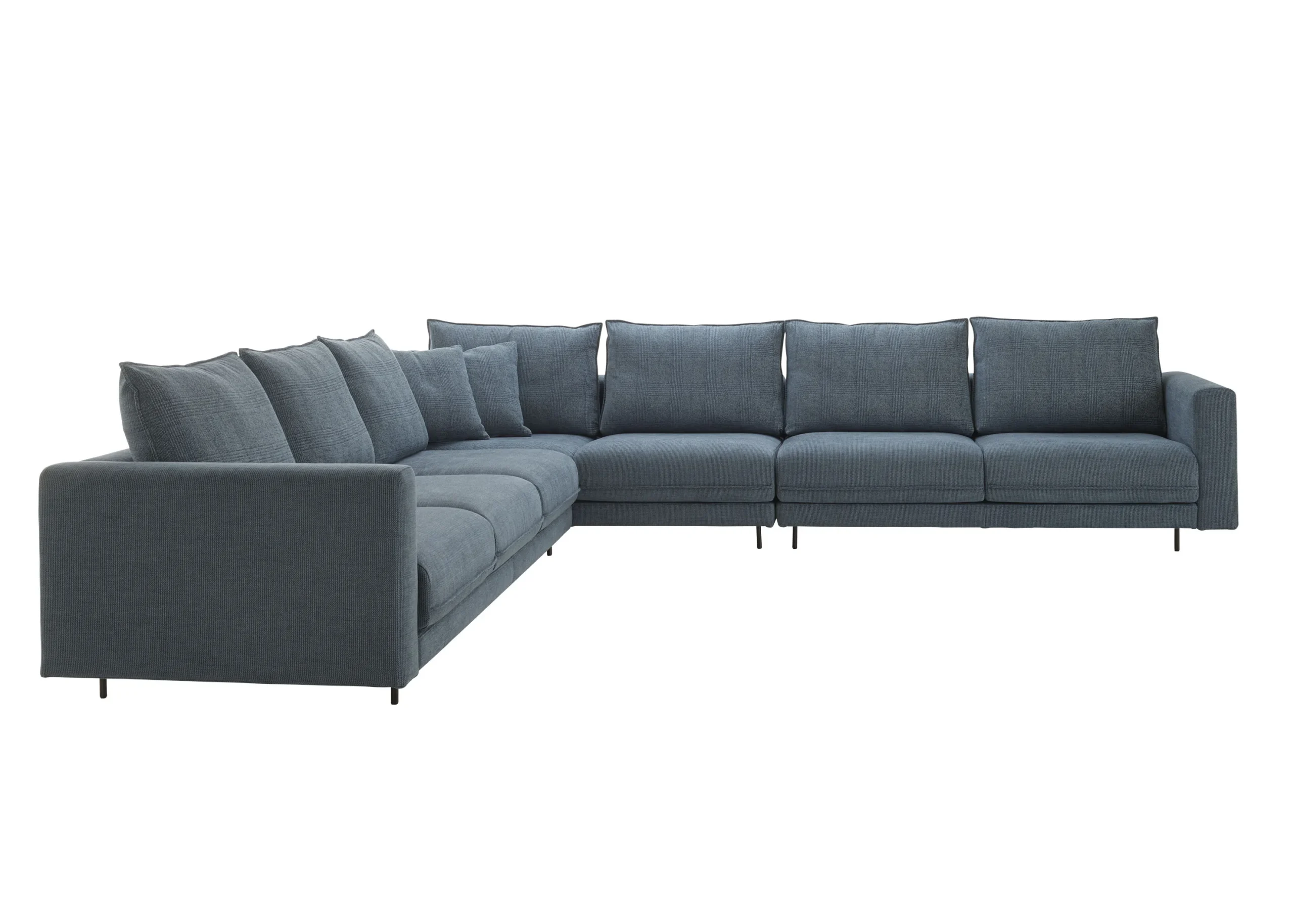 يرتكز الكنب على أرجل فولاذية دائرية مطلية باللون الأسود غير اللامع، مع خيارين للارتفاع (10 سم أو 13 سم)، ما يمنح مرونة في الشكل النهائي وارتفاع الجلوس.