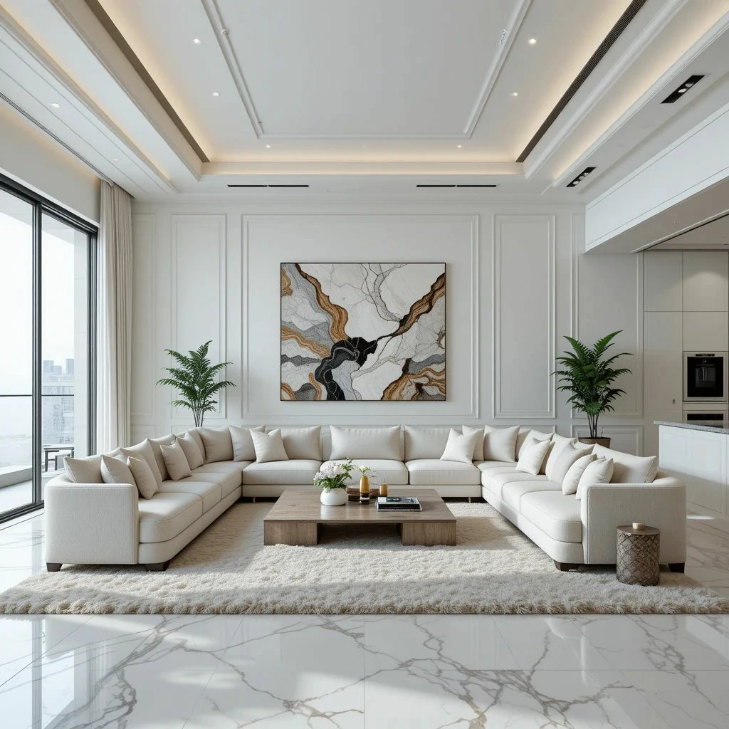 كنب مودرن سان مور – تصميم ملكي بلون أبيض فاخر