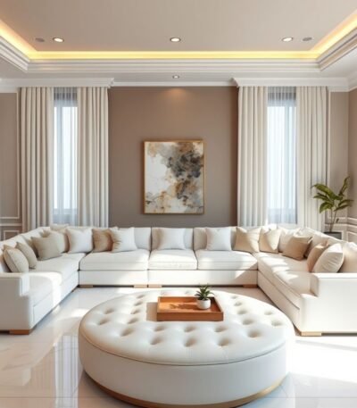 كنب جراند مودرن – تصميم أنيق للمساحات الكبيرة بلون بيج فاتح
